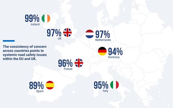 Esta situación es más frecuente en Irlanda (64%), Países Bajos (62%) y Alemania (59%). Además, casi dos tercios (64% de media) afirman que el exceso de tráfico o las obras dificultan la finalización de su trabajo, aunque destaca que este reto afecta sobre todo a España (78%).